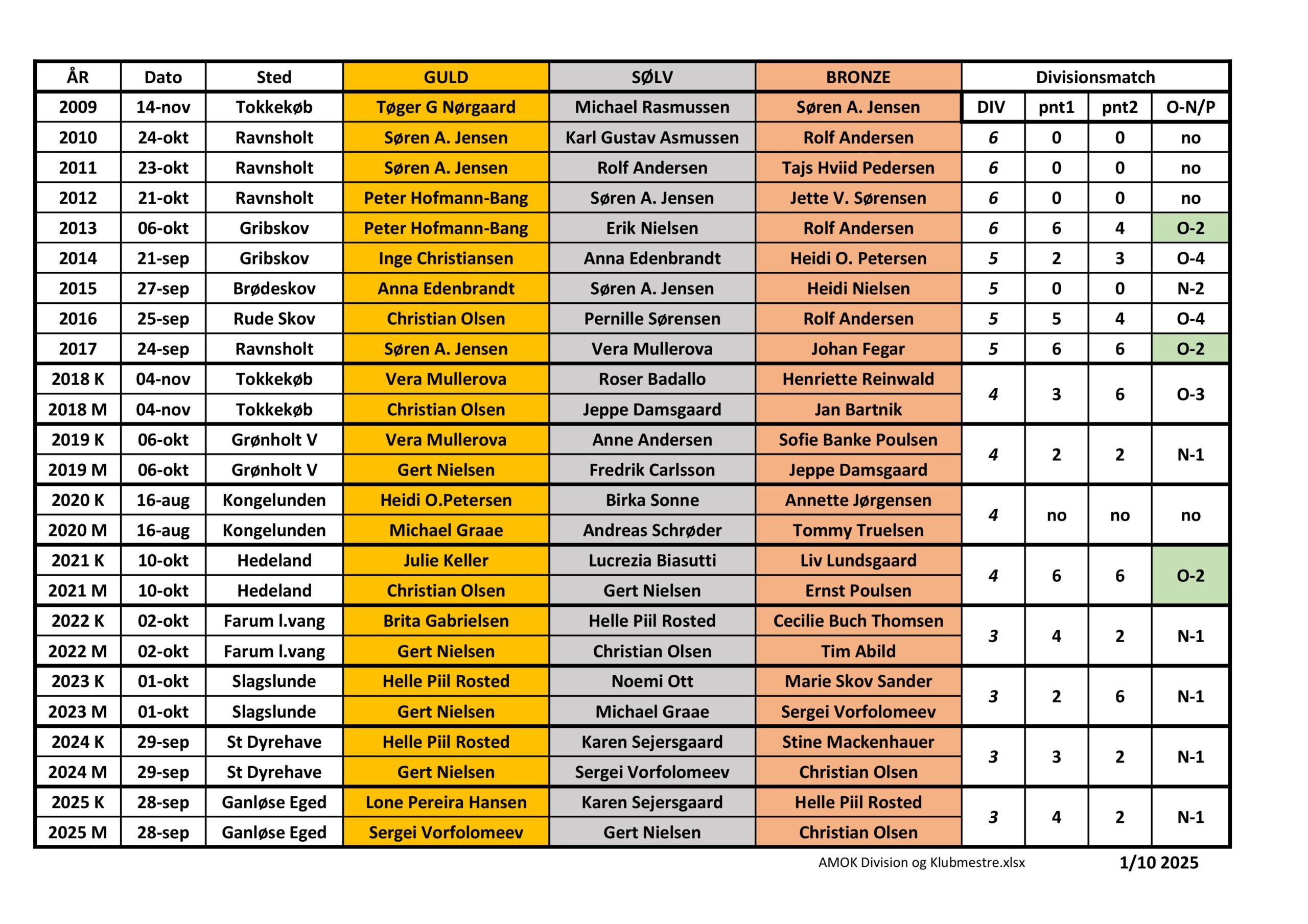 Har vi glemt nogen på medaljelisten, så send en mail til chrisolsendk@yahoo.dk, så opdaterer vi oversigten.
